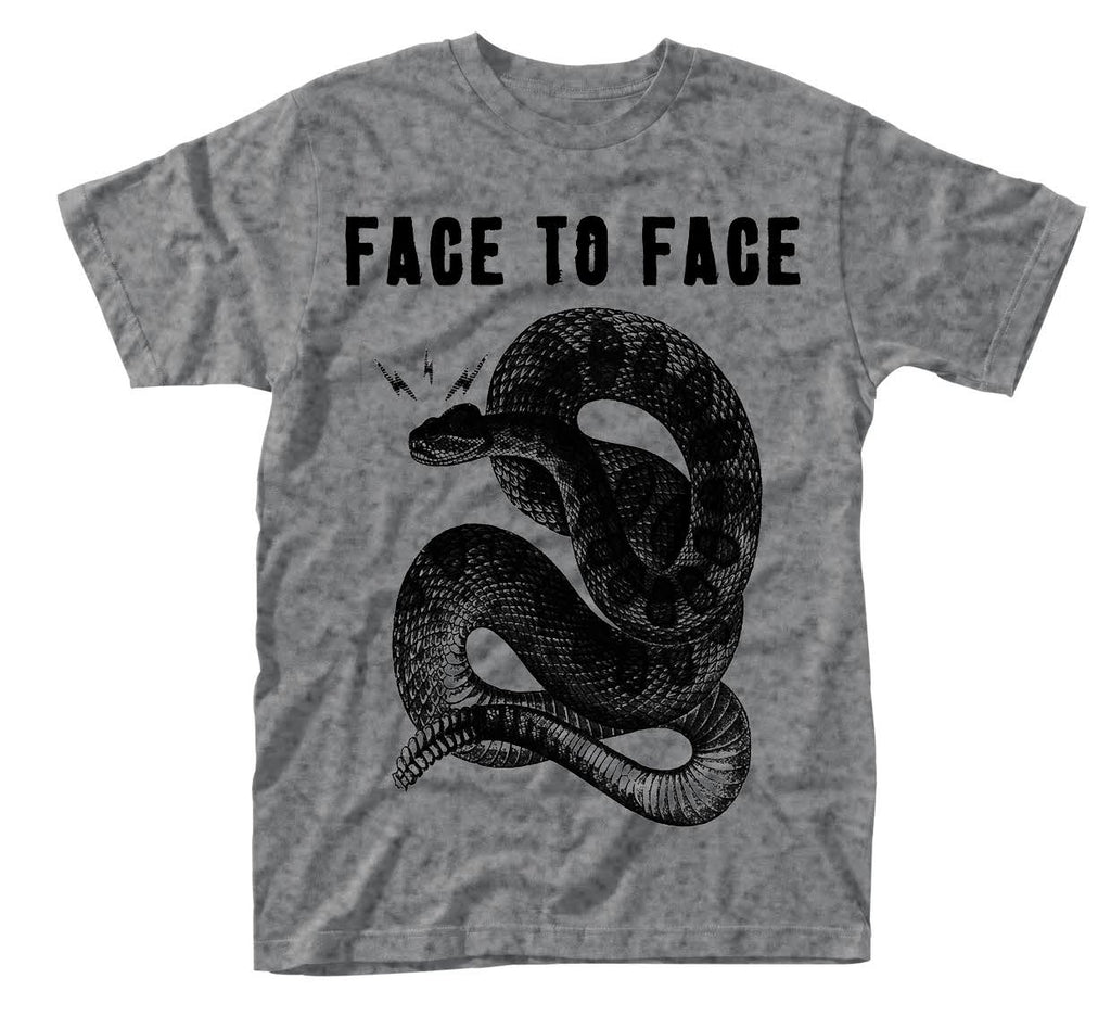An official licensed unisex cotton Tee featuring the Face To Face 'Snake' design motif. This high quality garment is available in a grey colourway. Size options include Small through XX-Large.