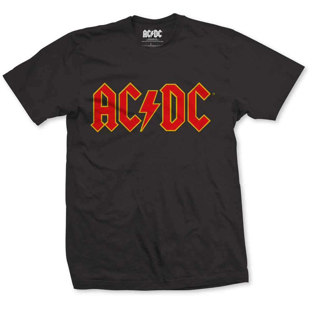 An official licensed unisex cotton Tee featuring the AC/DC 'Logo' design motif. This high quality garment is available in a black colourway. Size options include Small through XX-Large.