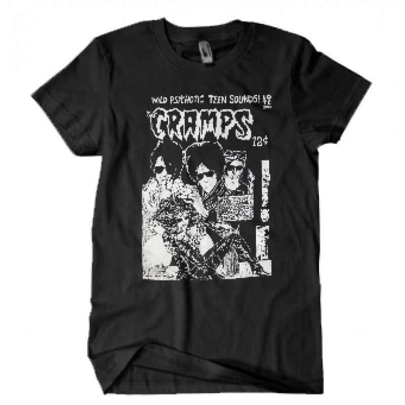 An official licensed Cotton Tee featuring the Cramps 'Psychotic Teen' design motif. This high quality garment is available in a black colourway. Size options include Small through XX-Large.