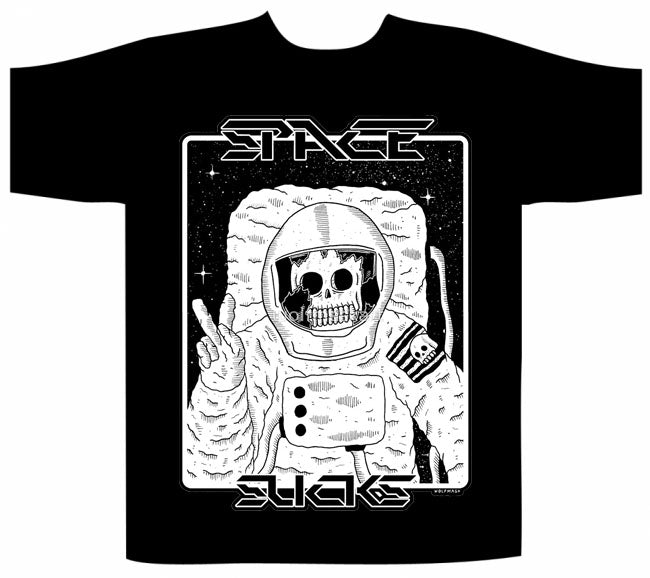 An official cotton Tee featuring the Wolfmask 'Space Sucks' design motif. This high quality garment is available in a black colourway. Size options include Small through XX-Large.